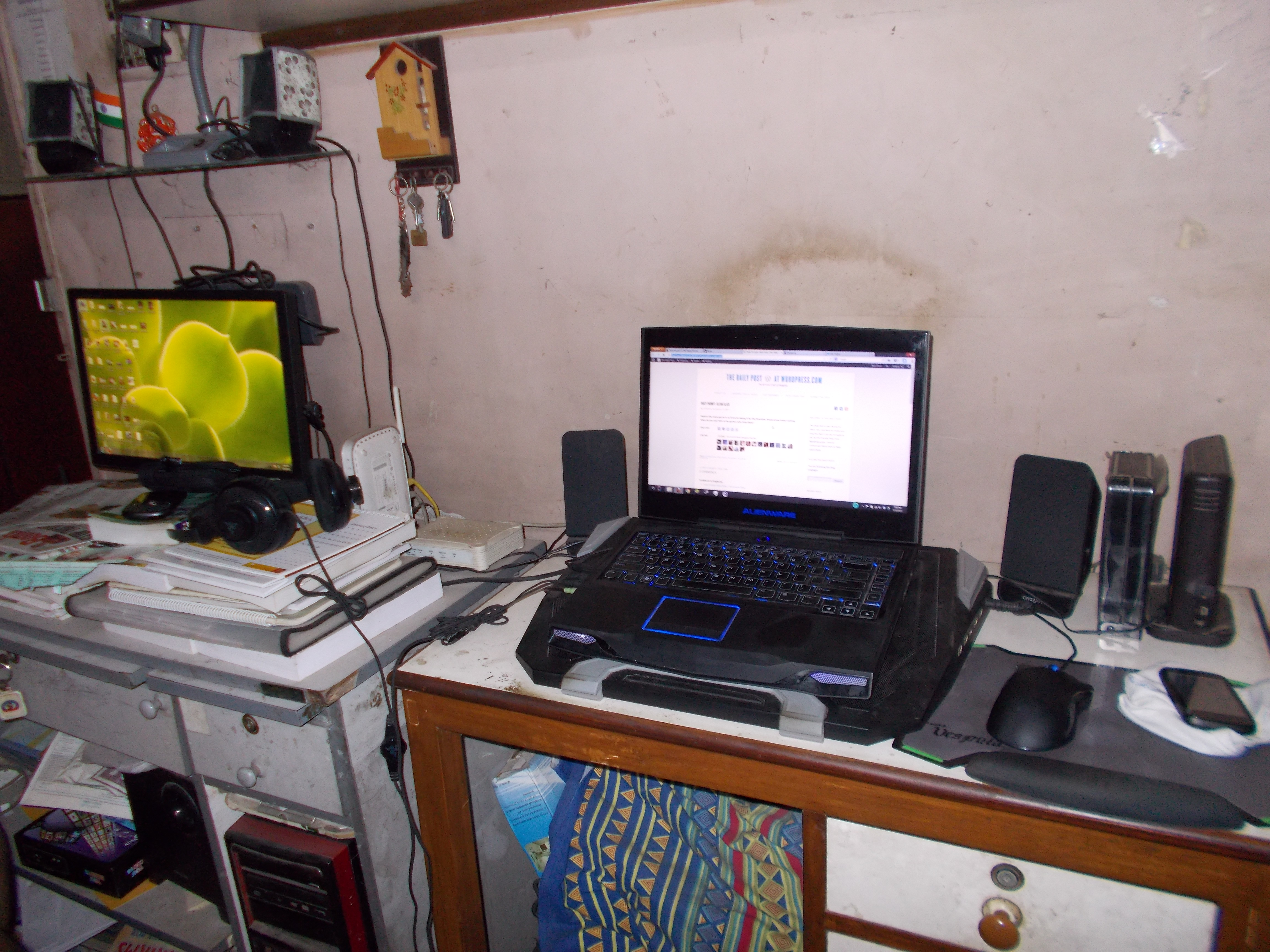 So I’m in my living room now, often (or rather mostly) called ‘hall’ in the Indian tongue. My laptop and other (related) things occupy a table adjacent to another table which has my home desktop PC which is adjacent to the front door. All this to my left. To my right lies another chair and my bed where I sleep. So you can say my maximum moment is between where I’m seated (now for instance) in front of my laptop and the bed which is hardly a meter away ๐